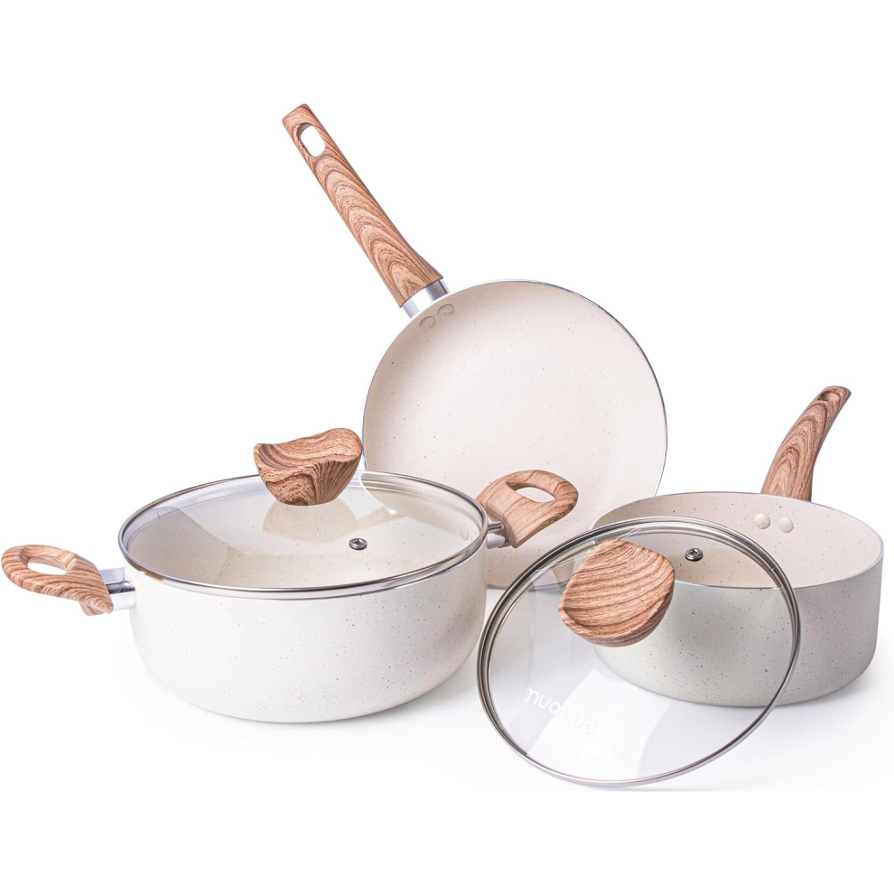 NonStick Cookware Set Induction Cookware Set With Detachable Handle Cream White Pans