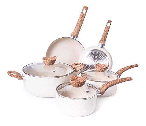 Non Stick Pots and Pans Set – Induction Hob – 5pcs, Cream Granite