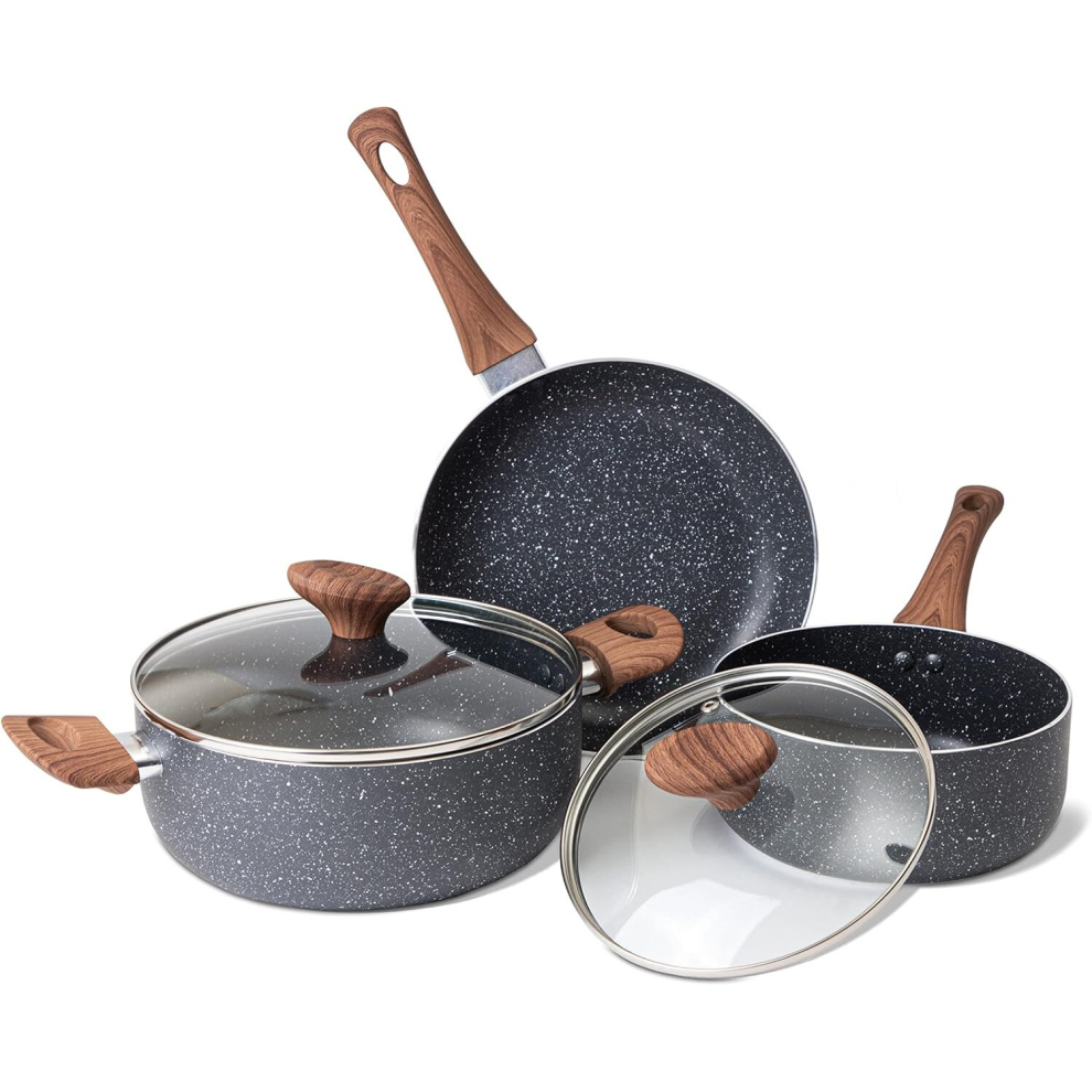 (5pcs, Marble) Non Stick Pots and Pans Set â Induction Hob Pots Set â 5pcs Kitchen Cookware with Lids â Cooking Cream Granite Saucepan Pots and