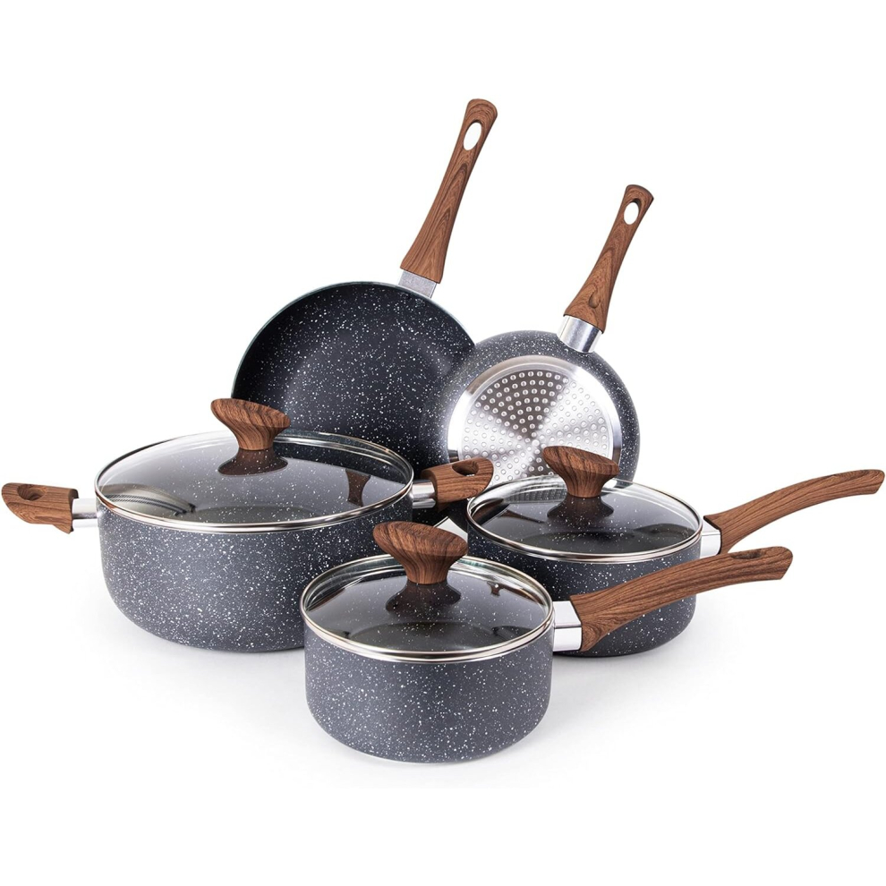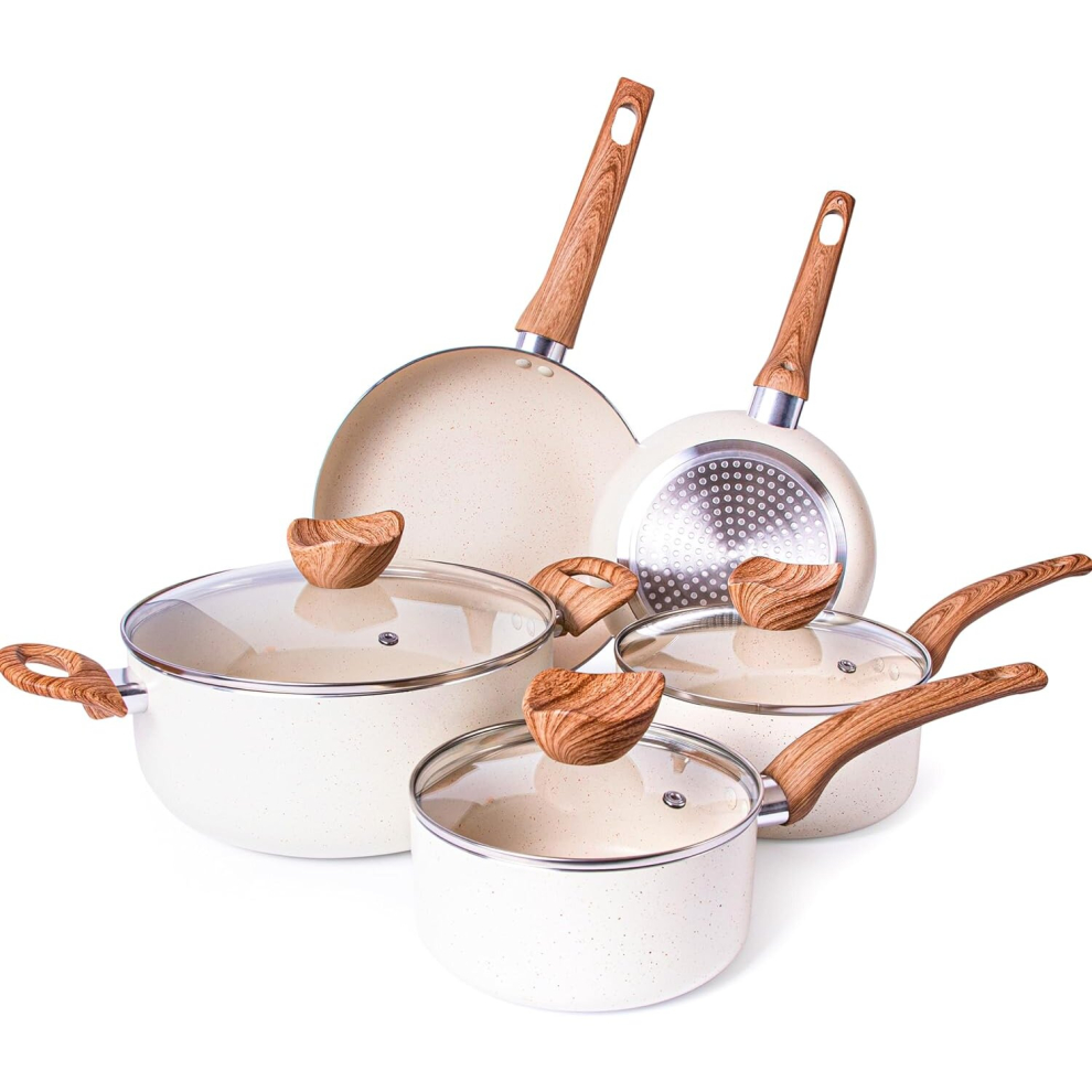 (8pcs, Cream Granite) Non Stick Pots and Pans Set â Induction Hob Pots Set â 5pcs Kitchen Cookware with Lids â Cooking Cream Granite Saucepan Po
