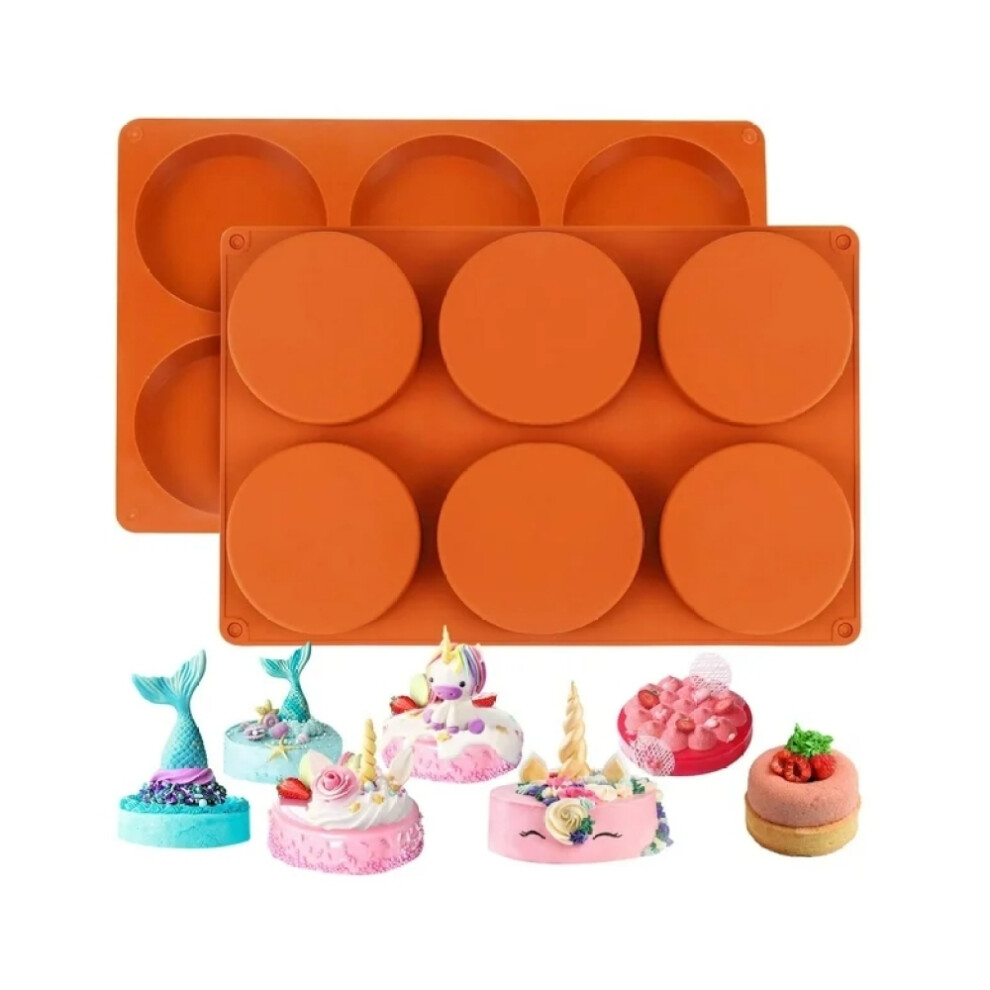 Heat Resistant Silicone Baking Pans, Freezer Safe 6-Cavity Round Disc Mold for Muffin Top, Hamburger Bun, Custard, Jelly, Pudding, Ice Cream, Soap, Ca
