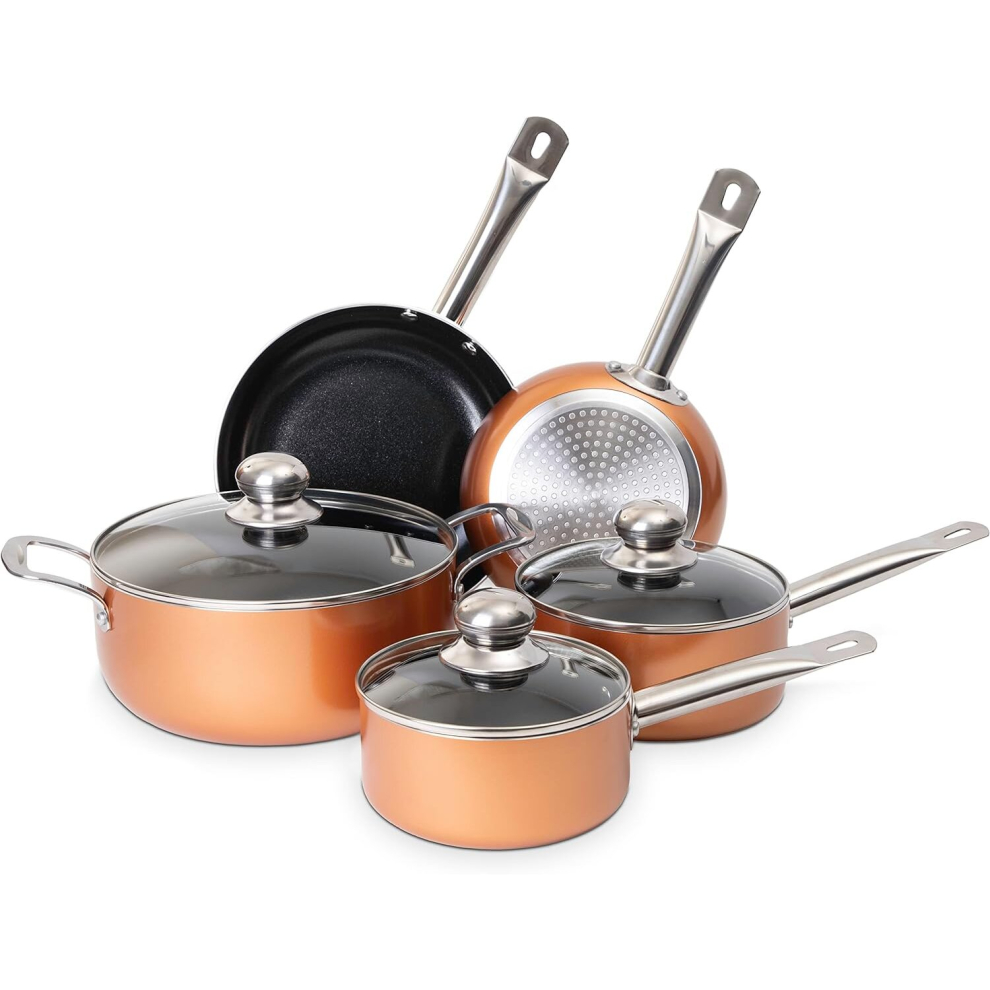 (8pcs, Copper) Non Stick Pots and Pans Set â Induction Hob Pots Set â 5pcs Kitchen Cookware with Lids â Cooking Cream Granite Saucepan Pots and