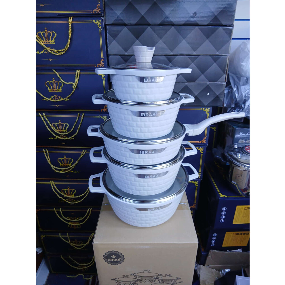 (5pcs, Cream Granite) Non Stick Pots and Pans Set â Induction Hob Pots Set â 5pcs Kitchen Cookware with Lids â Cooking Cream Granite Saucepan Po