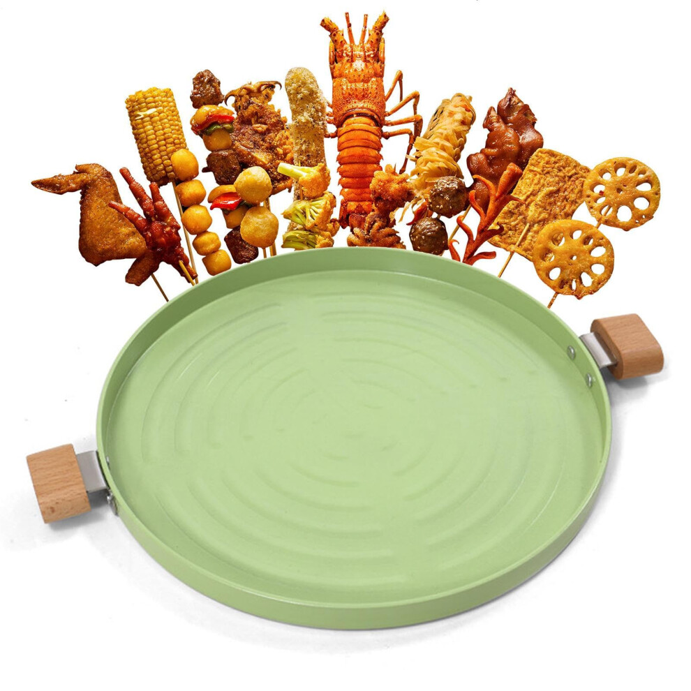 Grill pans for outdoor grill, grill plate, cream, smokeless, nonstick, kitchen utensils for cooking, with handle for camping