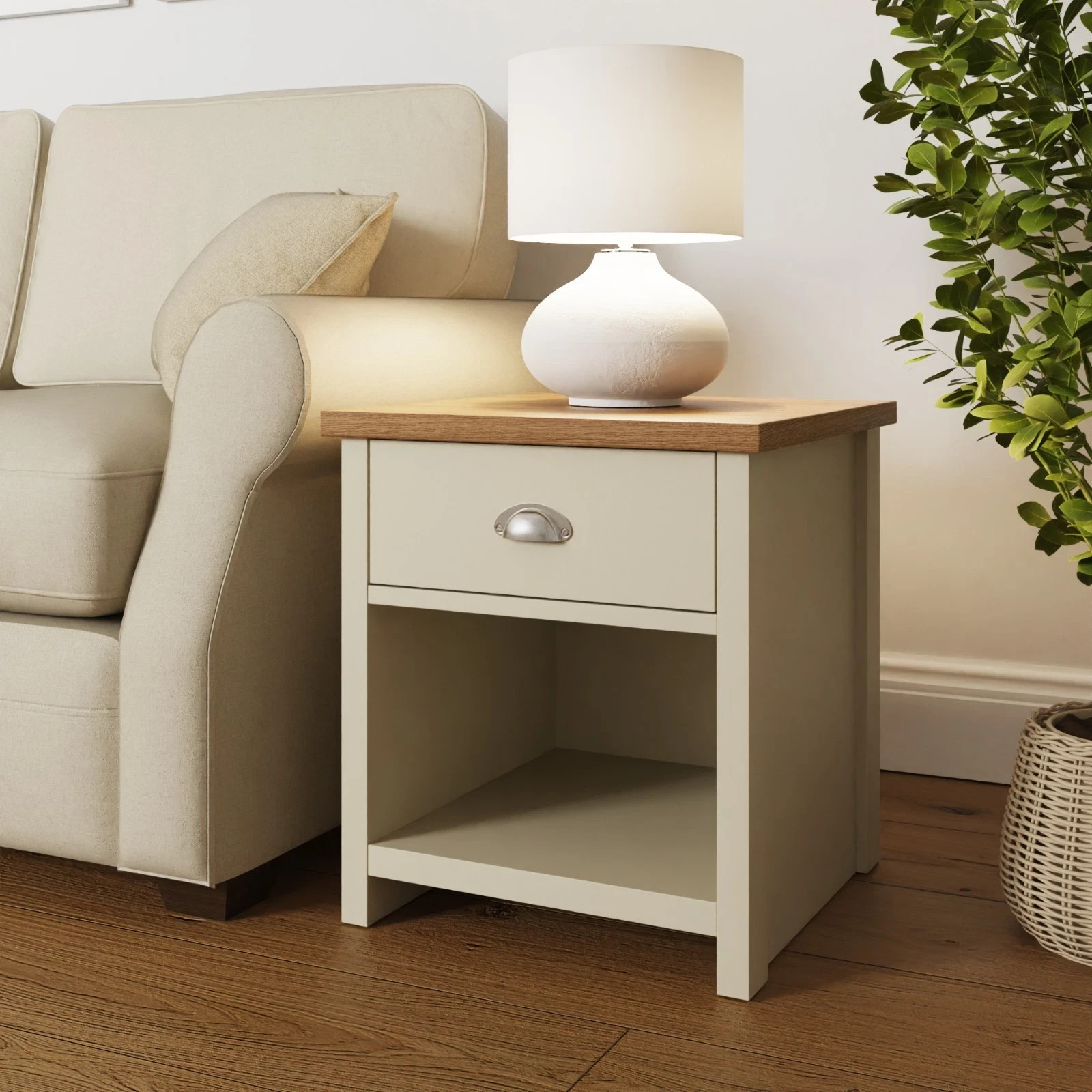 Cream Lamp Side Table End Cabinet Living Room Bedroom Lancaster Oak Top