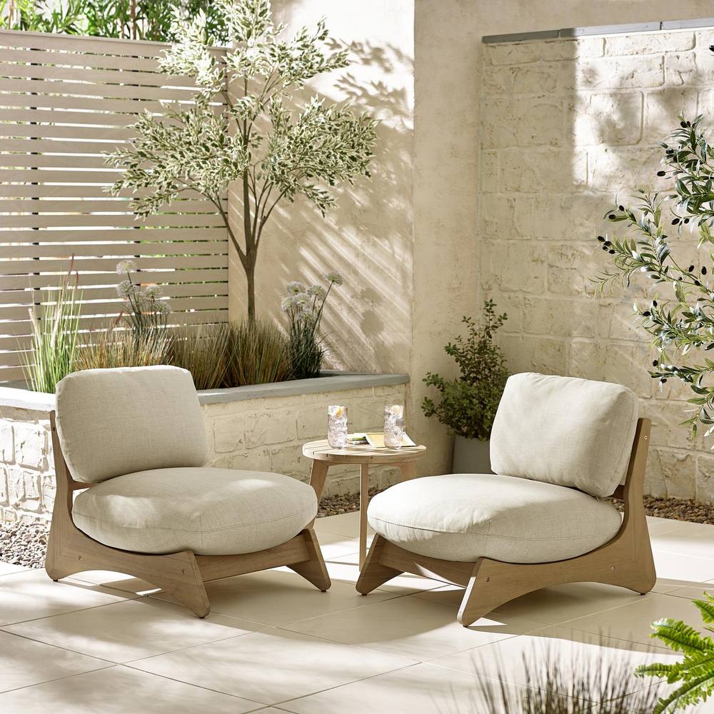 FurnitureboxUK Iko 2x Wood & Cream Chairs + Side Table Outdoor Set