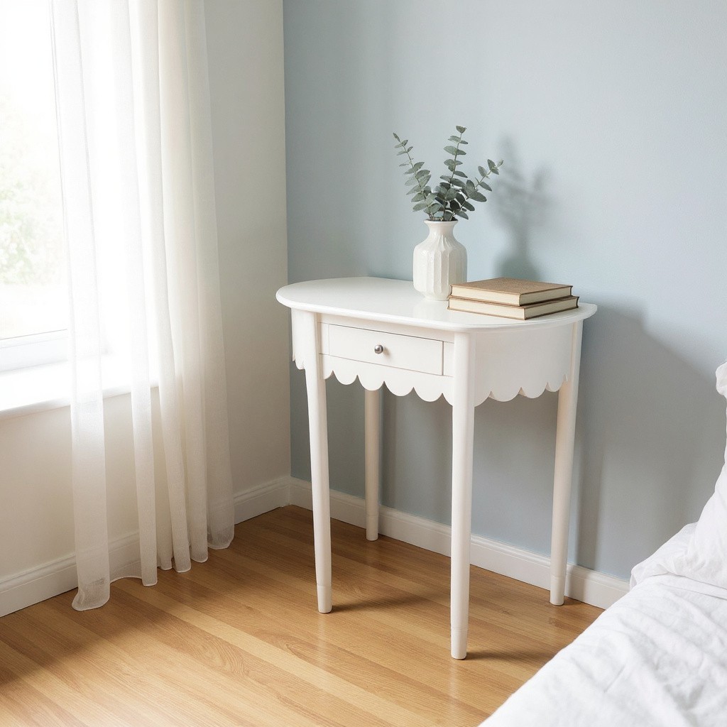 FURTOGUYI Modern Cream White Irregular Side Table, Minimalist Sofa Coffee Table with Rounded Edges, Space-Saving Small Accent Table, Stable and Easy to Assemble, for Living Room, Bedroom or Apartment