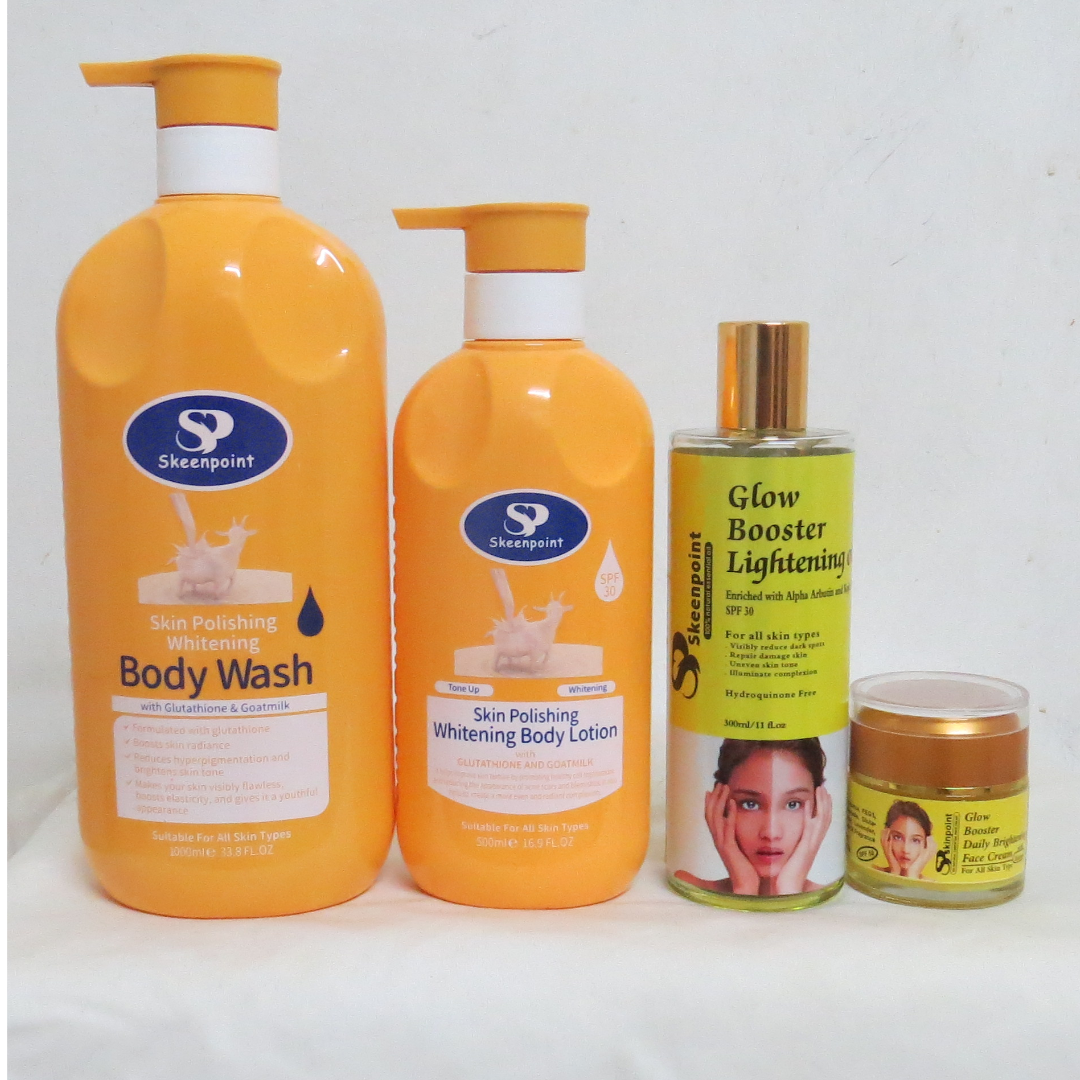 Skeenpoint Skin Polishing Whitening Body Wash + Lotion + Face Cream + Oil (4Pcs)