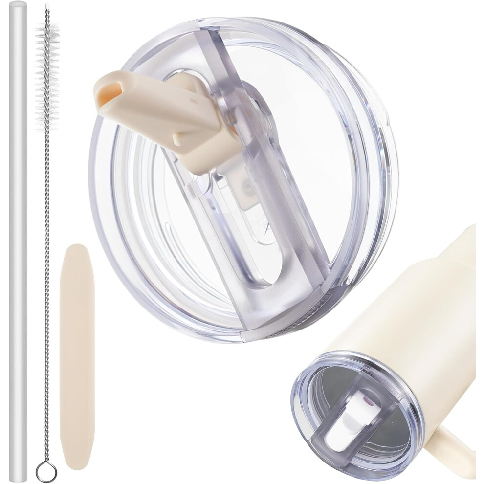 (Cream White, One size) 40 oz Tumbler Flip Straw Lid Replacement fit for Stanley Quencher