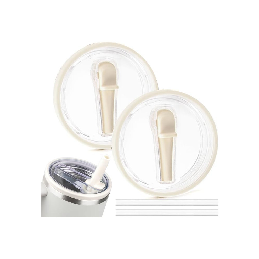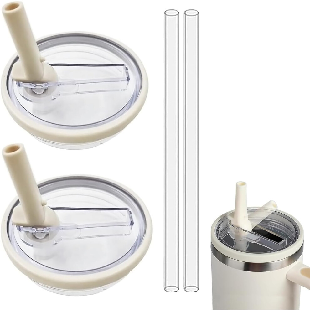 2pcs Leakproof Lid with Straw for Stanley Replacement,No-Spill Cup Lids for Stanley Quencher,Tumbler Flip Straw Lid for Stanley Accessories (Cream, 40oz)
