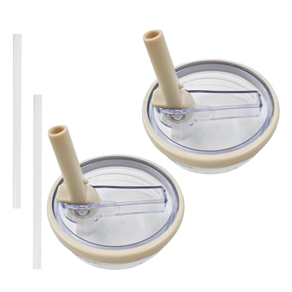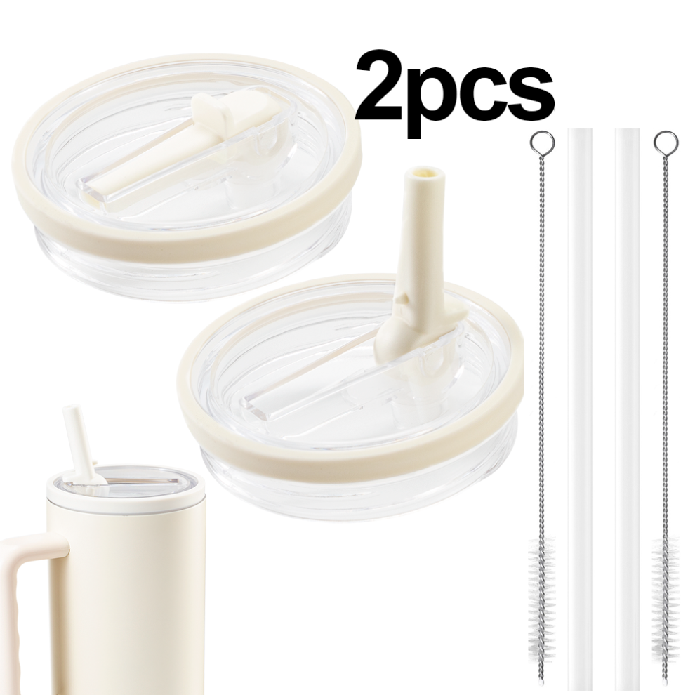 (2, cream) 2 Pack Leakproof Flip Straw Lids for Stanley 40oz Tumbler Replacement