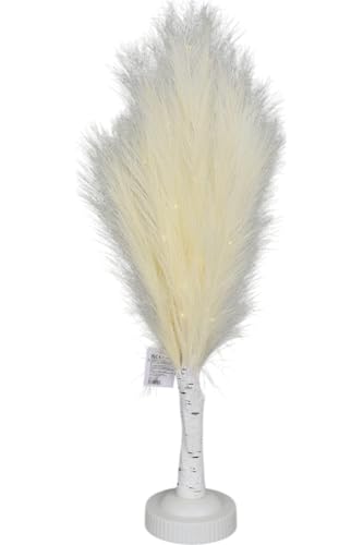 SHATCHI 70cm Cream Feather Tree Table Lamp Warm White LEDs Lighted Pampas Tree – Battery-Operated Decorative Night Light for Christmas, Home, Events, Holiday Decorations
