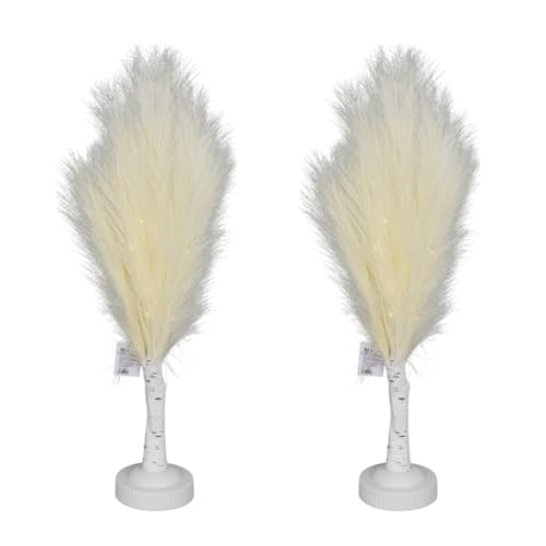 SHATCHI 2Pcs - 70cm Cream Feather Tree Table Lamp Warm White LEDs Lighted Pampas Tree – Battery-Operated Decorative Night Light for Christmas, Home, Events, Holiday Decorations