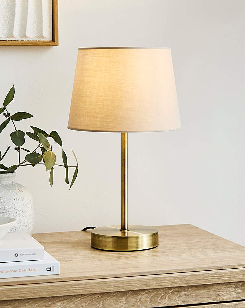 Homes Direct 365 Small Gold Ribbed Round Base Lamp With Cream Shade