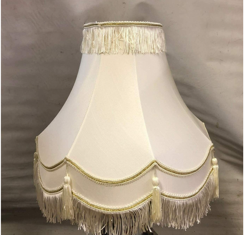 12" TRADITIONAL FULLY LINED TRADITIONAL CREAM/GOLD TABLE LAMP SHADE
