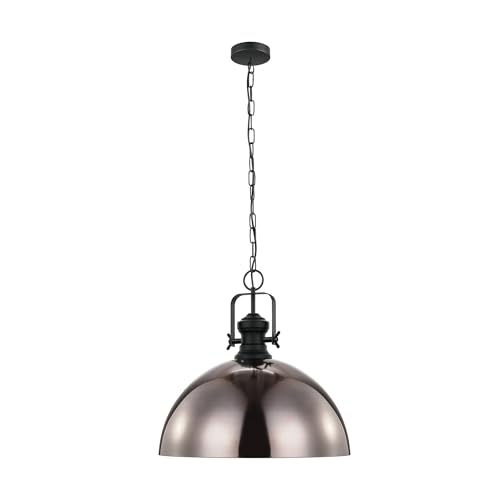 EGLO Combwich Pendant Light 1 Bulb Industrial Vintage Retro Steel Pendant Light in Black Cream Dining Table Lamp Living Room Lamp Hanging with E27 Socket Diameter 53 cm