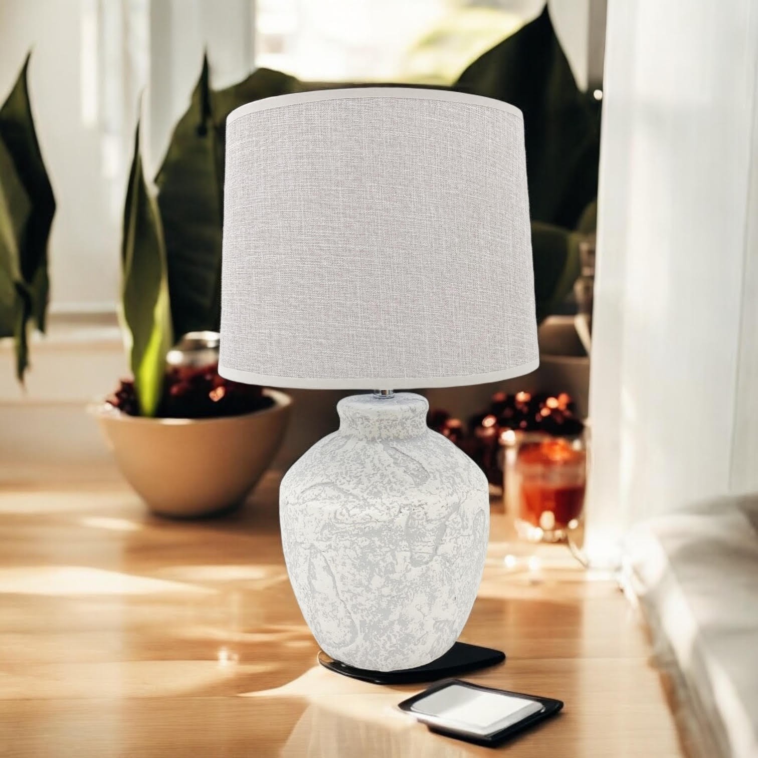 Rustic Cream Ceramic Table Lamp with Fabric Shade – Stylish Lighting for Home
