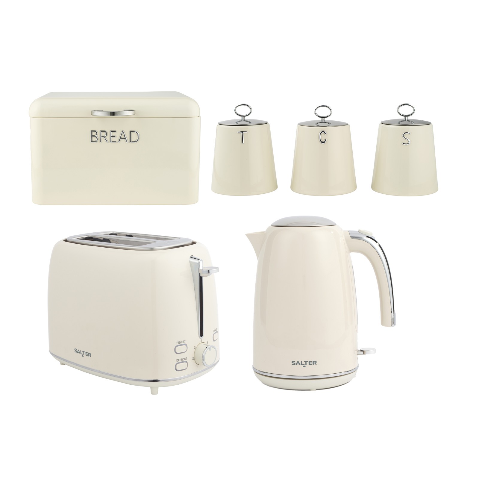 Salter Retro Cream Kettle, Toaster & Bread Bin Set 2 Slice Rapid Boil Durable