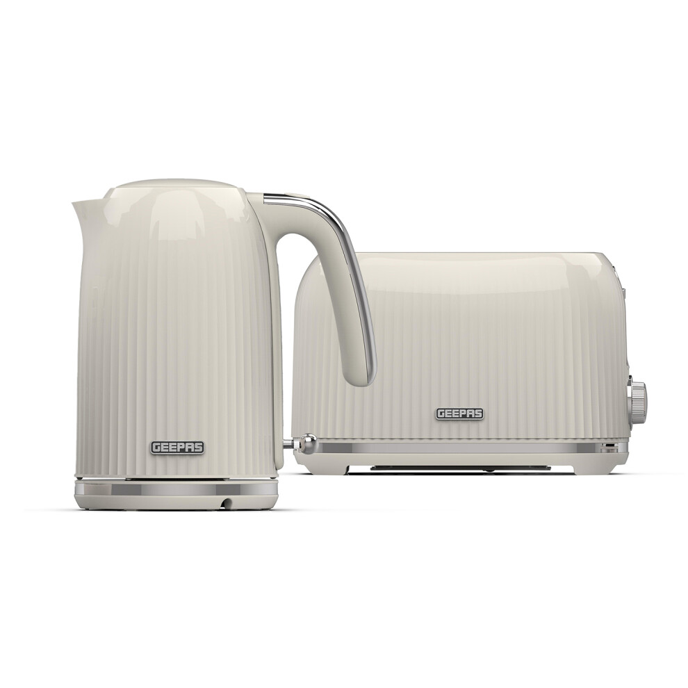 (Cream) Geepas 1750W Toaster&1.7L Cordless Electric Kettle