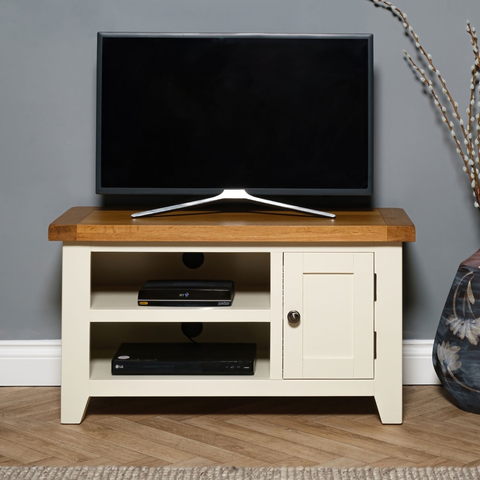 The Furniture Market Cheshire Cream Painted Small TV Unit - Up to 42" Widescreen Size, Compact Corner TV Stand, Limed Oak Top, No Assembly Required - H 505mm x W 870mm x D 430mm