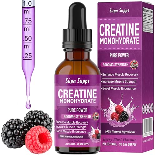 Creatine Monohydrate Drops 60ml - Liquid Alternative to Creatine Monohydrate Powder, Ideal for Gym Performance, Bulk Creatine Formula, Supports Muscle Growth, Recovery, and Energy - Berry Flavour