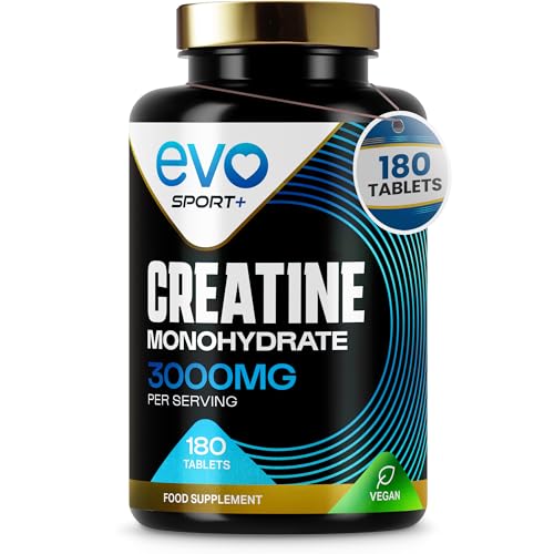 EVO NUTRITION Creatine Monohydrate Tablets 3000mg - 180 Creatine Tablets | Unflavoured Gym Supplement & Powder Alternative for Men & Women | Muscle Mass & Exercise Recovery | Vegan, Keto & Made in UK