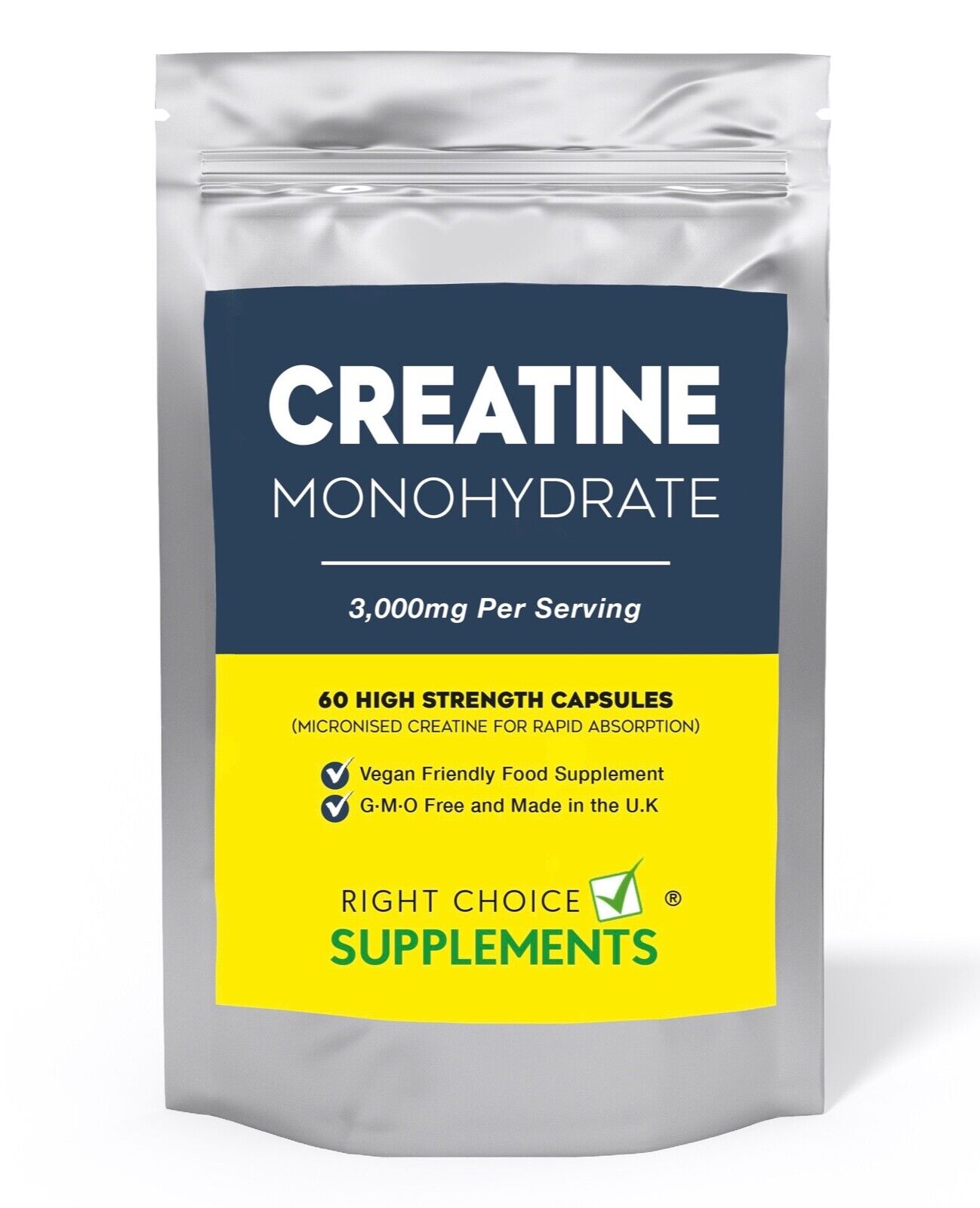 3000mg CREATINE MONOHYDRATE - MUSCLE GROWTH & STRENGTH - 60 Capsules not tablets