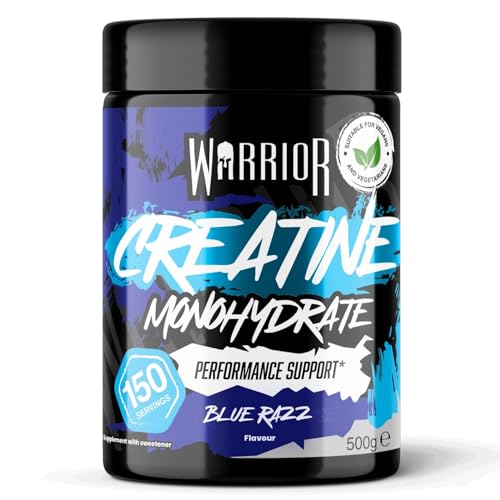 Warrior Creatine Monohydrate Powder 500g (150 Servings) – Pure Micronised Creatine Powder Supplement for Men & Women, Pre & Post Workout Strength, Muscle Growth & Recovery, Vegan – Blue Razz