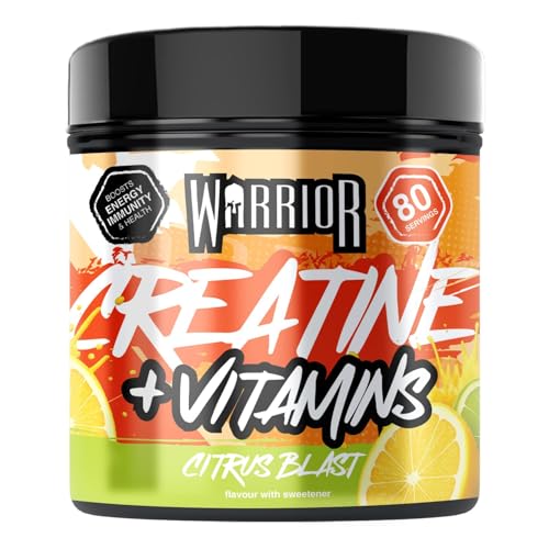 Warrior Creatine Monohydrate Powder + Multivitamin 360g (80 Servings) – Micronised Creatine Powder Supplement for Men & Women – Vitamin D, A, C, E, B Complex, Magnesium, Iron, Zinc – Citrus Blast