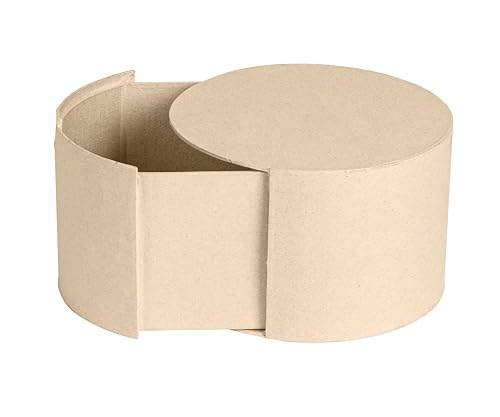 Décopatch BT087C - Brown papier-mâché stand 16x16x10 cm, Round box with drawer - DIY - Customisable Décor - Completely Personalise - Creative Leisure Activity