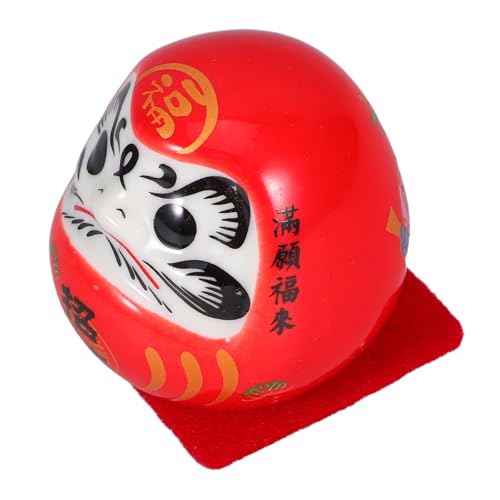 BESPORTBLE Ceramic Japanese Statue Figurine, Red Good Luck Doll Charm, Creative Zen Decor for Office, Home, and Car Interior