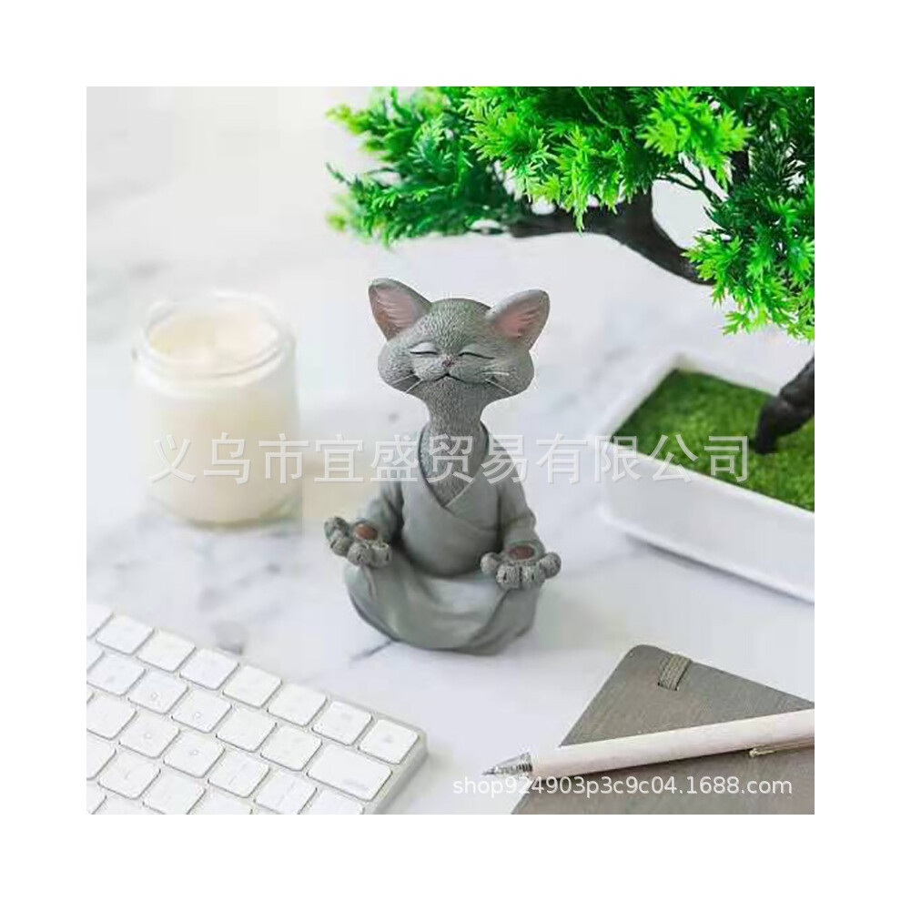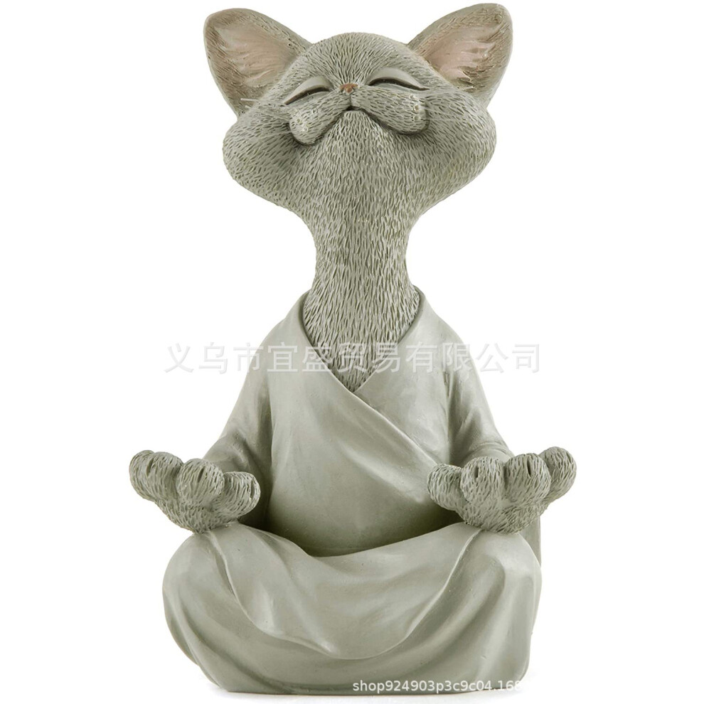 (Small Grey Cat Sitting 12.5cm) Laughing Buddha Cat Figurine Decoration Design Home Garden Creative Sculpture Zen Buddha Style Sitting Statue
