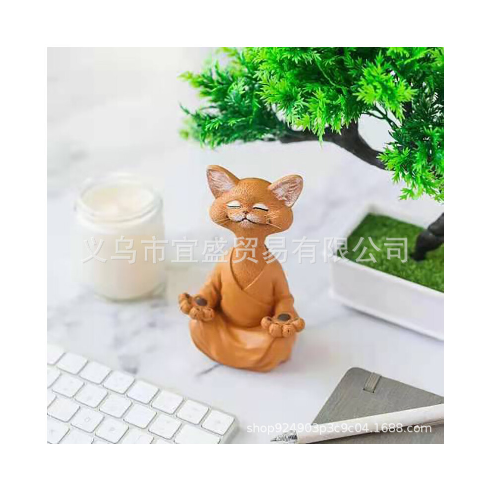 (Small Orange Cat Sitting 12.5cm) Laughing Buddha Cat Figurine Decoration Design Home Garden Creative Sculpture Zen Buddha Style Sitting Statue