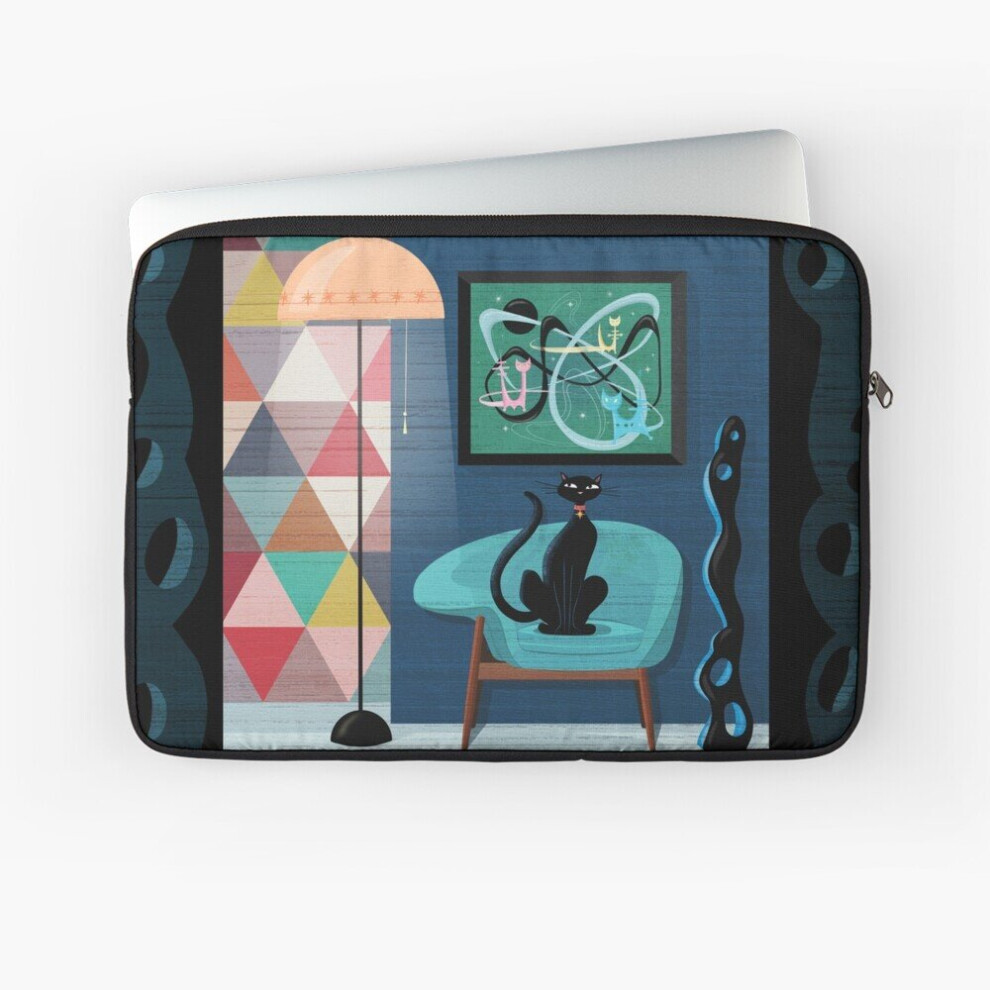 Laptop Sleeve Creature Comforts Mid-Century Interior With Black Cat 10 12 13 15 17 Inch Case Notebook Tablet Carrying Bag Cover