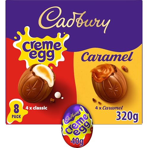 Cadbury Crème Egg and Caramel Milk Chocolate Egg, Perfect For Easter Egg Hunts, Includes 8 Eggs, 320 g (Pack of 1)