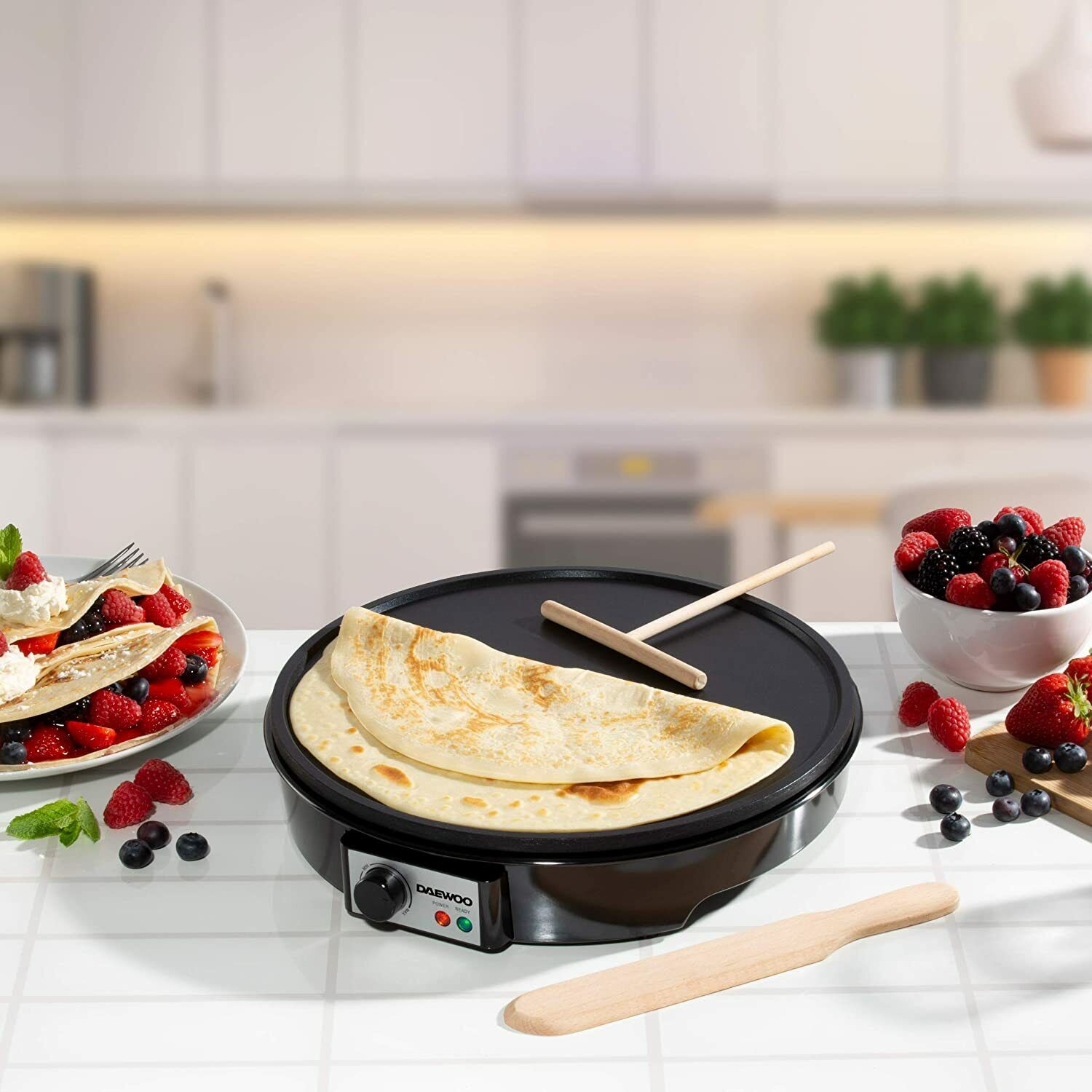 Daewoo Crepe Maker 12" Fixed Hot Plate for Pancakes Non-Stick - Tools Included