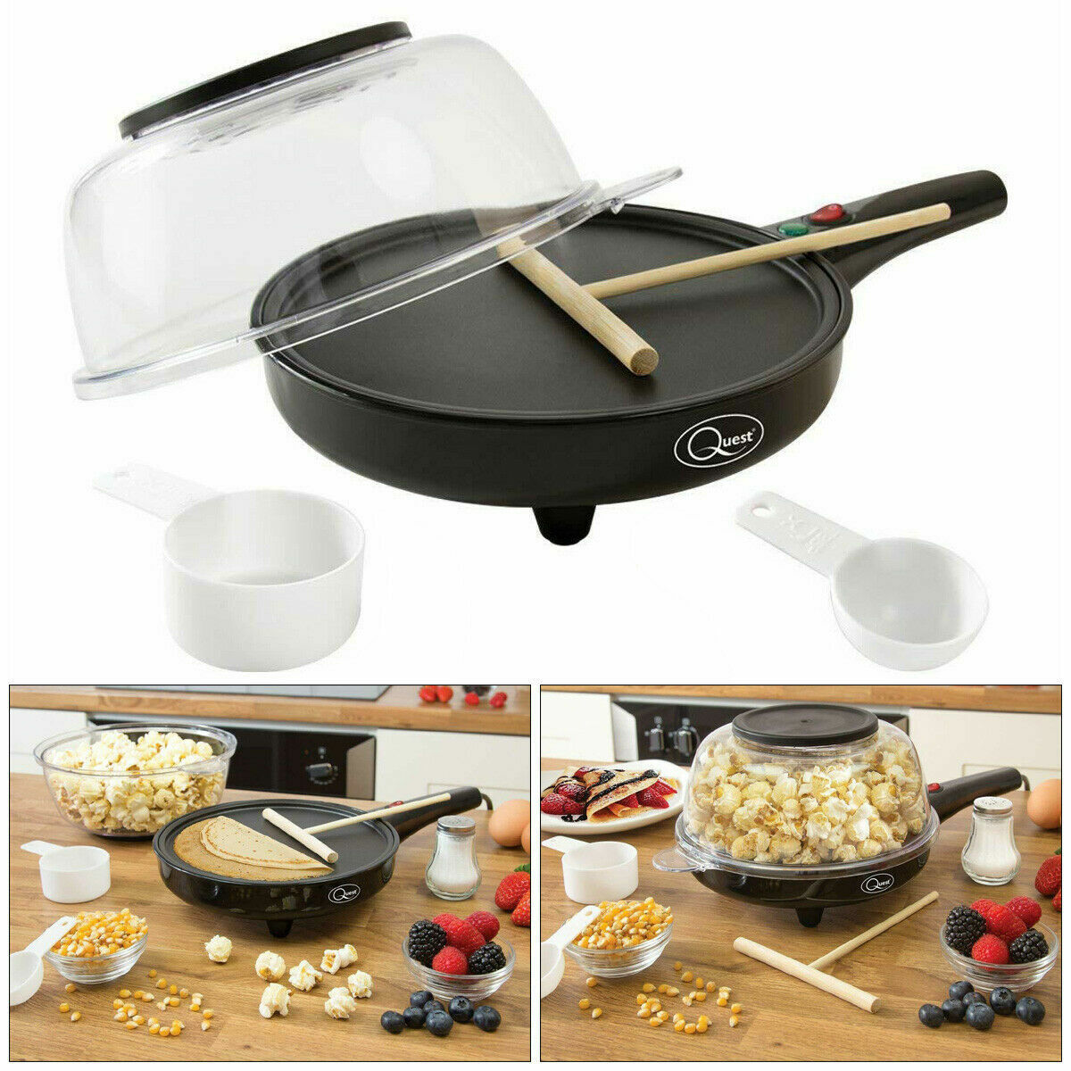 ELECTRIC POPCORN & CREPE MAKER 8" NON STICK PLATE FREE ACCESSORIES 2~IN~1