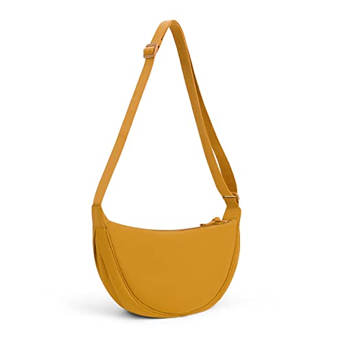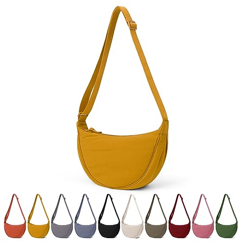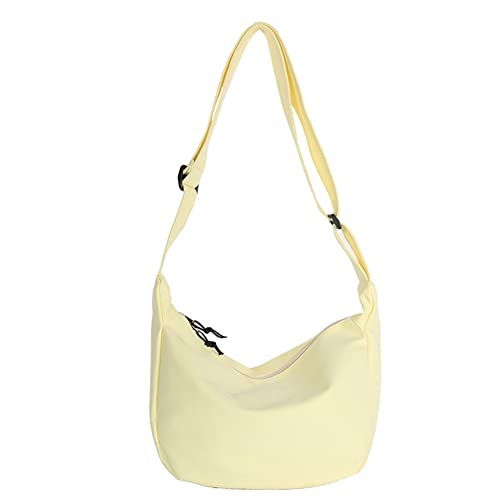 TIAASTAP Crossbody Bags for Women Men Hobos & Shoulder Bags Nylon Crescent Bag Cross Body Bag with Adjustable Strap Solid Color Dumpling Bag for Travel Work School (Yellow)