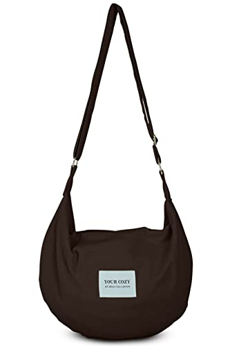 YOUR COZY Crescent Crossbody Bag for Women – Large Boho Cotton Sling Purse with Zipper | Lightweight Hobo Messenger Shoulder Bag (Chocolate)