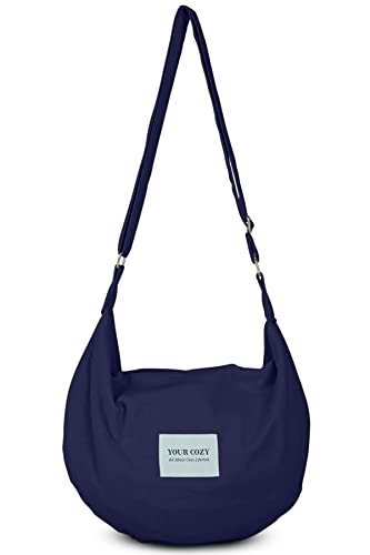 YOUR COZY Crescent Crossbody Bag for Women – Large Boho Cotton Sling Purse with Zipper | Lightweight Hobo Messenger Shoulder Bag (Navy)