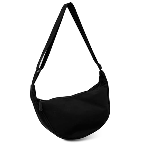 TIAASTAP Crossbody Bags for Women Men Hobos Shoulder Bags Nylon Crescent Bag Cross Body Bag with Adjustable Strap Solid Color Dumpling Bag for Travel Work School (Black)