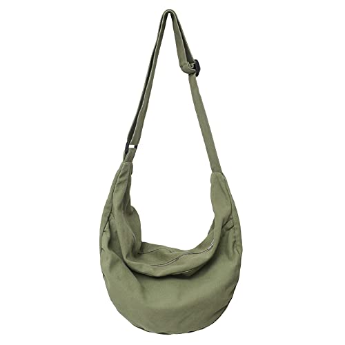 YOUR COZY Crescent Crossbody Bag for Women – Large Boho Cotton Sling Purse with Zipper | Lightweight Hobo Messenger Shoulder Bag (Green)