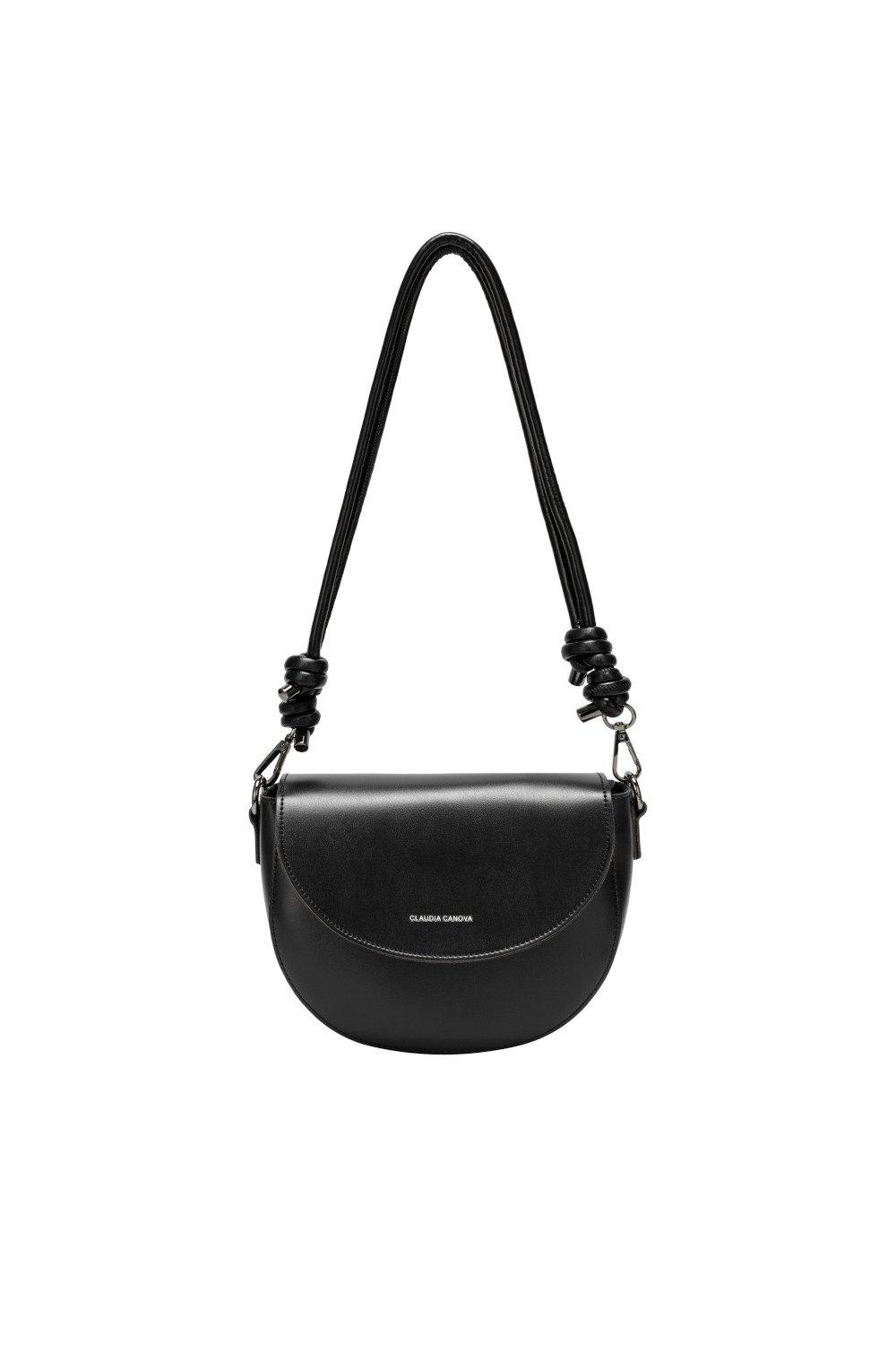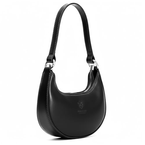 Stylish Crescent Moon Shoulder Bag – Small Dumpling Style Real Leather Handbag with Fixed Strap – Lyra (Black)