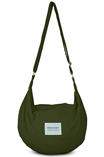 YOUR COZY Crescent Crossbody Bag for Women – Large Boho Cotton Sling Purse with Zipper | Lightweight Hobo Messenger Shoulder Bag (Forest)