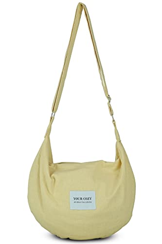 YOUR COZY Crescent Crossbody Bag for Women – Large Boho Cotton Sling Purse with Zipper | Lightweight Hobo Messenger Shoulder Bag (Cream)