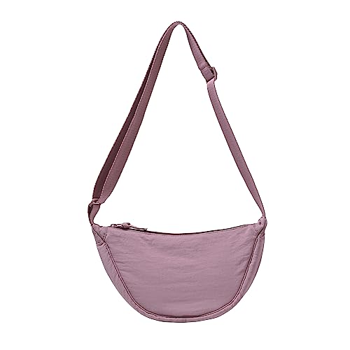 TIAASTAP Crossbody Bags for Women Men Hobos & Shoulder Bags Nylon Crescent Bag Cross Body Bag with Adjustable Strap Solid Color Dumpling Bag for Travel Work School (Pink)