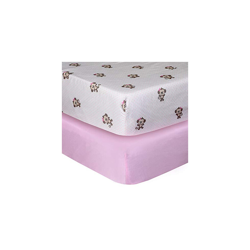 2 Pack GOTS Certified Organic Cotton Fitted Crib Sheet – Monkey Pink