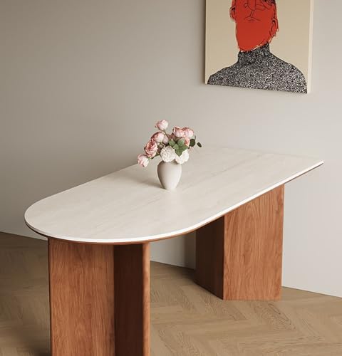 KIBONCY Roman Travertine Dining Table Set With Oak Solid Wood Legs - 3-in-1 Cold Press Anti-Crack, 80cm Wide Top, Space-Saving Design, Easy Clean & Child-Safe(Table,180x80x75cm)