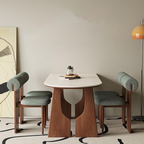 KIBONCY Roman Travertine Dining Table Set With Oak Solid Wood Legs - 3-in-1 Cold Press Anti-Crack, 80cm Wide Top, Space-Saving Design, Easy Clean & Child-Safe(4 people,160x80x75cm)