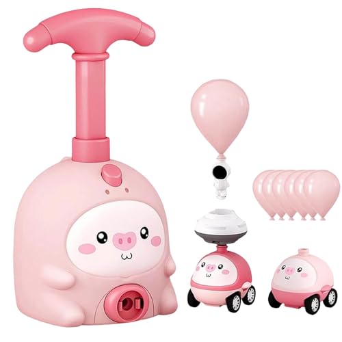 Press and Go Car Toys for 1-2-3 Year Old Boys - Vehicle Set Racing, Easy Push Down Action, ABS - Learning Cause Effect Toddler Toy, Animal Air Powered Balloon Car Toy, Animal Balloon Car Toy (Pink)